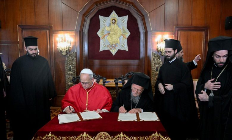 El Papa León XIV y el Patriarca Ecuménico Bartolomé I firmaron hoy una Declaración Conjunta en Estambul en la que reafirman su compromiso con el camino hacia la plena comunión. El texto rechaza enérgicamente cualquier uso de la religión para justificar la violencia y hace un llamamiento a la paz, al diálogo y al testimonio cristiano compartido