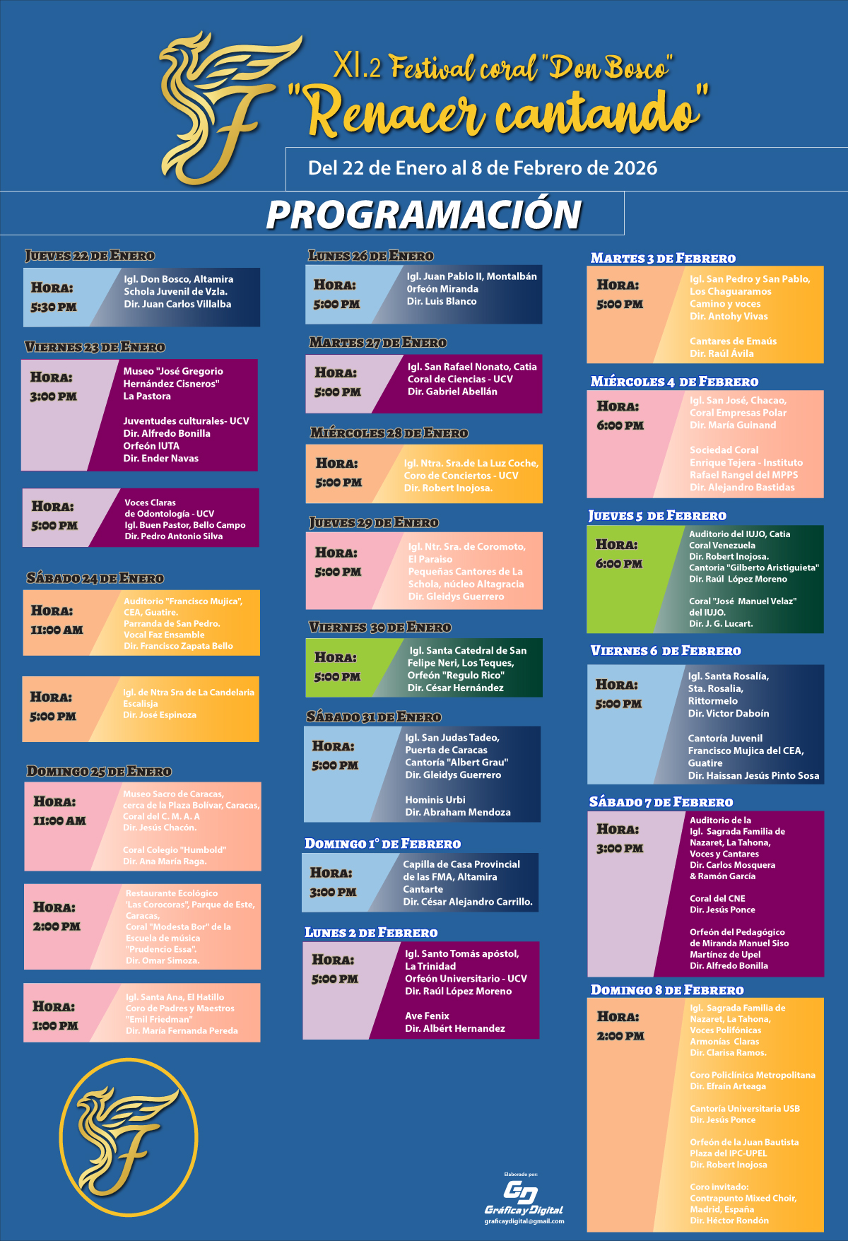 Para conocer toda la programación en detalle revise nuestro calendario de misas y conciertos con fecha, hora , lugar y agrupación a presentarse en nuestras redes.-